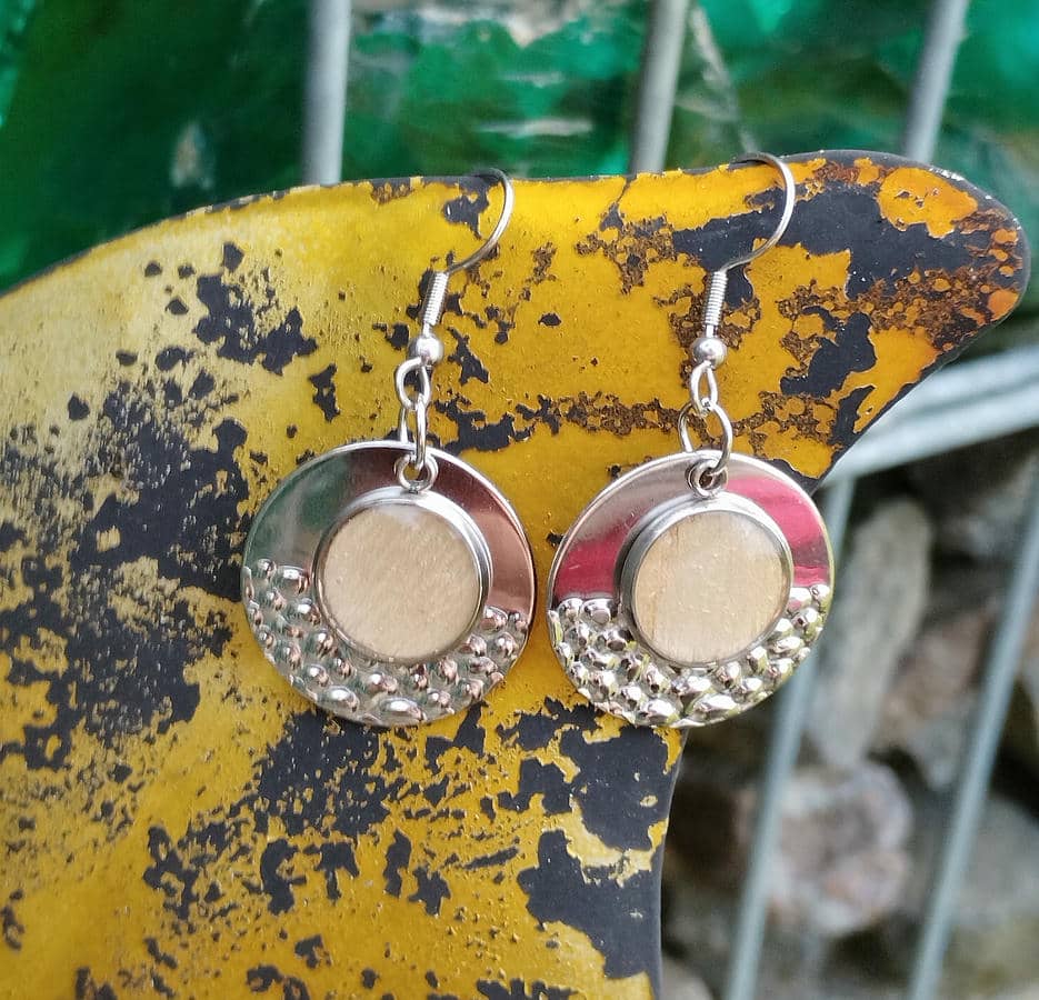 Edelstahlohrringe mit Weiß-Esche (Art. 362)