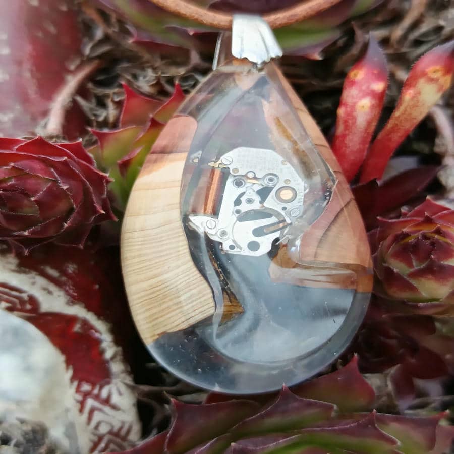 Dieser kompakte Schmuckanhänger in Form eines Tropfens ist ein einzigartiger Hingucker, der mit dem eingegossenen Teil eines Uhrwerkes zeitlos ist. Lassen Sie sich von der Einzigartigkeit und dem besonderen Charme dieses Anhängers begeistern. Perfekt für jede Schmucksammlung!